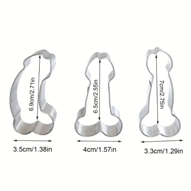 3pcs, Penis Cookie Cutters, Dick Shaped Candy Molds, Stainless Steel Biscuit Molds, Chocolate Cutters, Cake Decorating Molds, Baking Tools