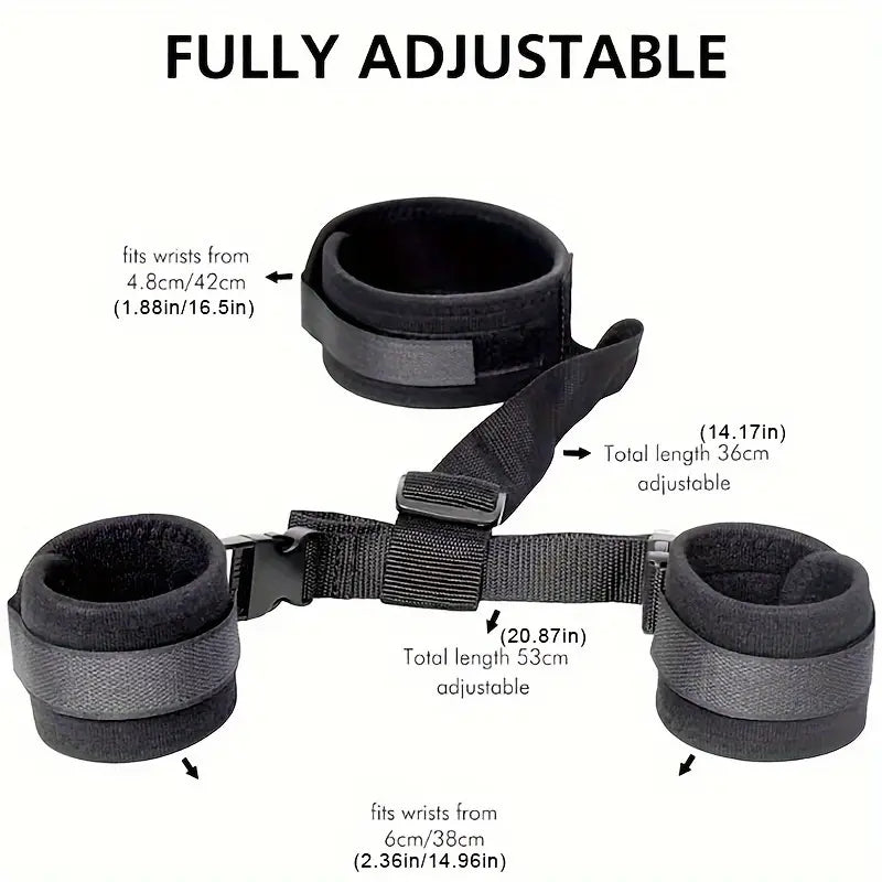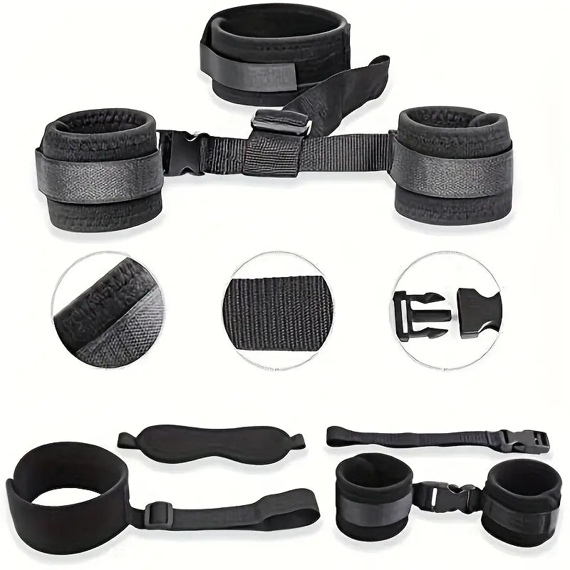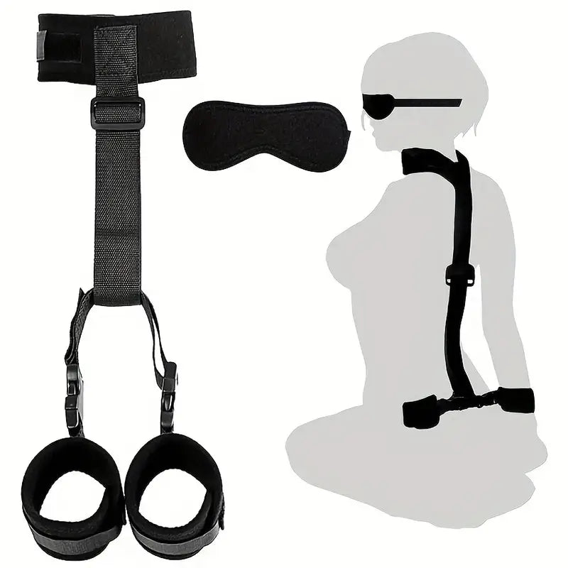 1pc Premium BDSM Restraint Set - Soft Leatherette Neck to Wrist Bondage Kit with Behind Back Handcuffs, Collar & Blindfold - Adjustable Couples Sensual Toys for Intimate Explorations and SM Games