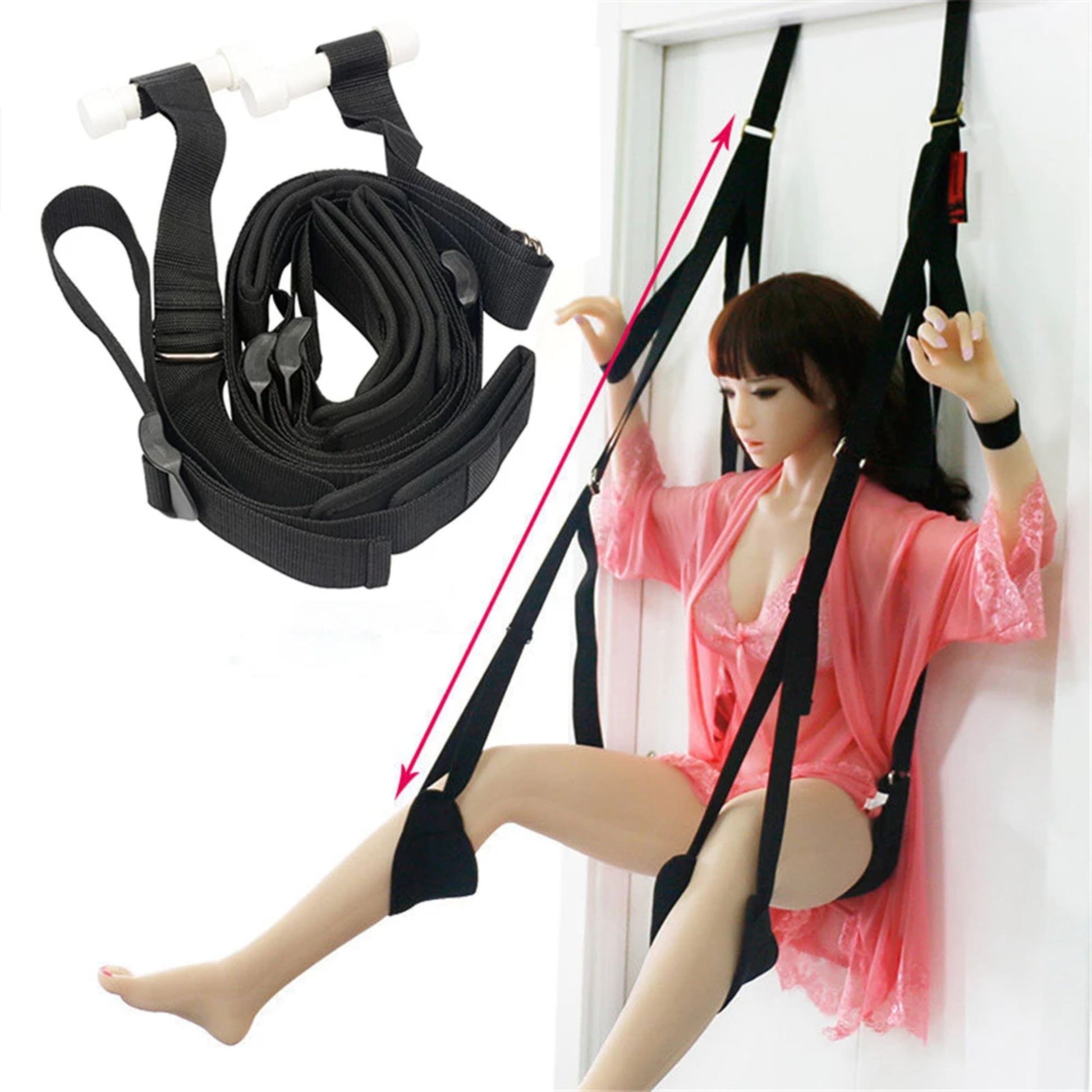 DOOR SWING (5 MATS) TAKES UP TO 200KG ENRICH YOUR SENSUAL LIFE TO NEW LEVELS. BRINING YOU THE ABSOLUTE STIMULATION. THERE ARE ENDLESS AMOUNTS OF EROTIC POSITION POSSIBILITIES. THIS GIVES TOTAL CONTROL FOR THE DOMANANT THE SWING HAS PADDED PLUSH SUPPORTS FOR YOUR BUTT, FEET AND WRISTS.