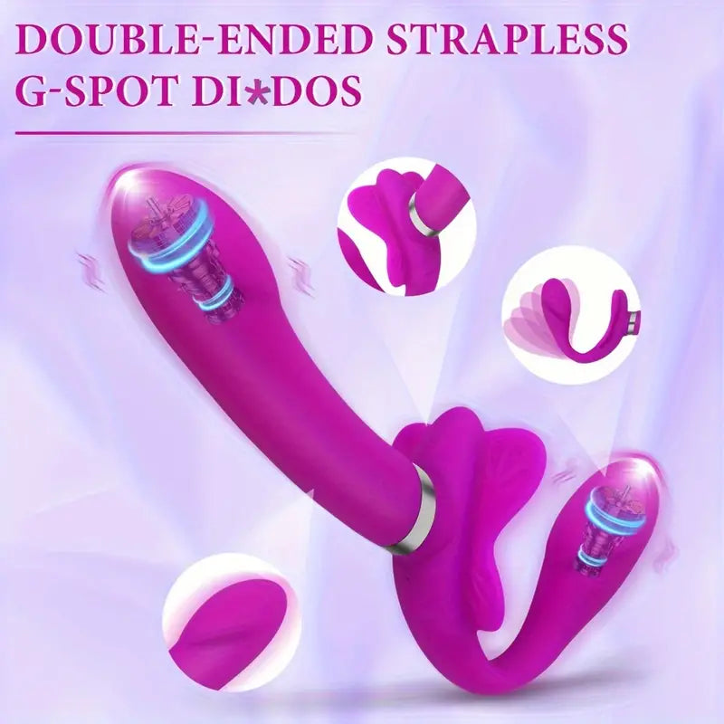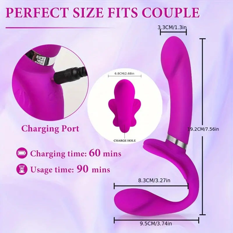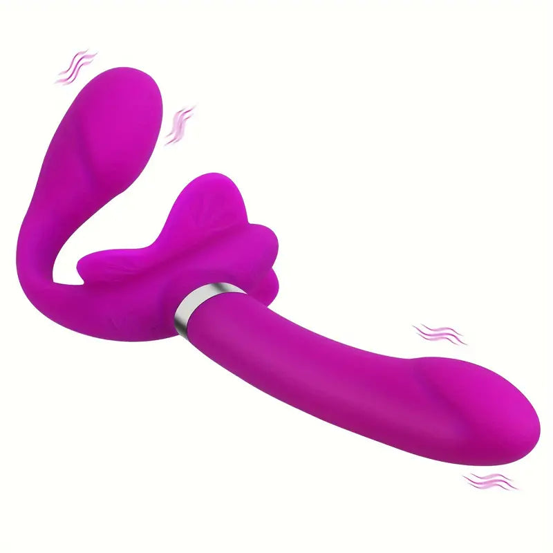 1pc Luxurious Couple's Delight Vibrator - 12-Mode Rechargeable G-Spot Dildo with Silicone Strapless Strap-On Design, Clitoral Butterfly Stimulator, and Powerful Vibrations for Ultimate Lesbian Pleasure