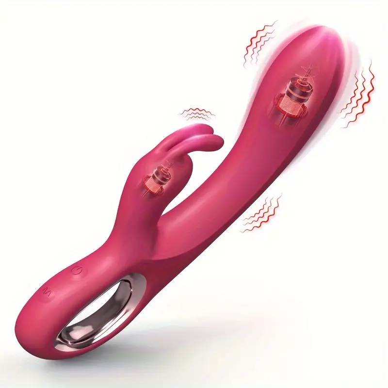 1pc Rabbit Ear Shape Vibrator, 2-in-1 One-click Vibration Realistic Dildo, 10*10 Powerful Independent Vibration Mode, Female or Couple Adult Sensual Toys, Ring Vibrator, Double Vibration, Suitable for Female and Couple Use, Adult Products