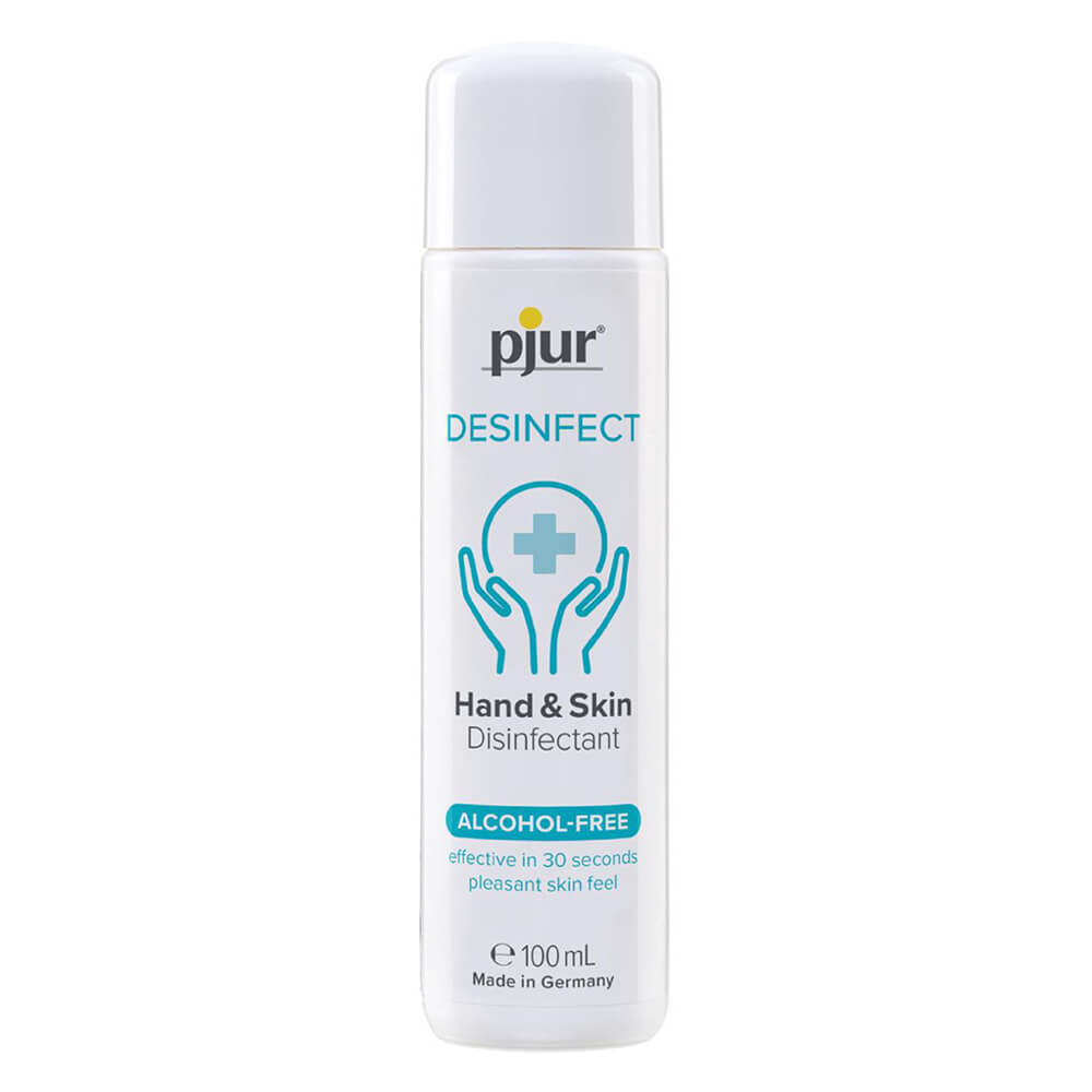 The highly effective pjur disinfectant for skin and hands. Free from alcohol, perfume and microplastics. It is skin-friendly, pH-neutral and vegan. In addition, it does not dry out the skin. For the highest demands on personal hygiene - Made in Germany. Registered according to the German biocide reporting regulation. Instructions for use: For hygienic disinfection, put at least 3 ml into the dry palm of the hand, rub evenly into the hands for at least 30 seconds, do not rinse off.