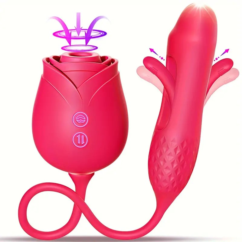 Rose toy vibrator for woman, clitoral tongue vibrator sensual toy with 10 sucking & 10 flapping modes, G-Spot dildo rose nipple anal massager licking stimulator for women and couples