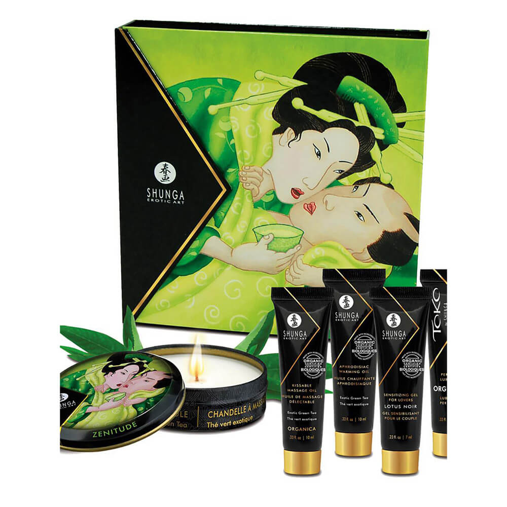 The perfect romantic experience for couples who have a passion for nature. Contents: ORGANICA Delicious Massage Oil (10ml), Warming Body Oil (10ml), Massage Candle ZENITUDE (30ml), Lubricant TOKO ORGANICA (10ml), LOTUS NOIR Sensitizing Gel for Lovers (7ml).