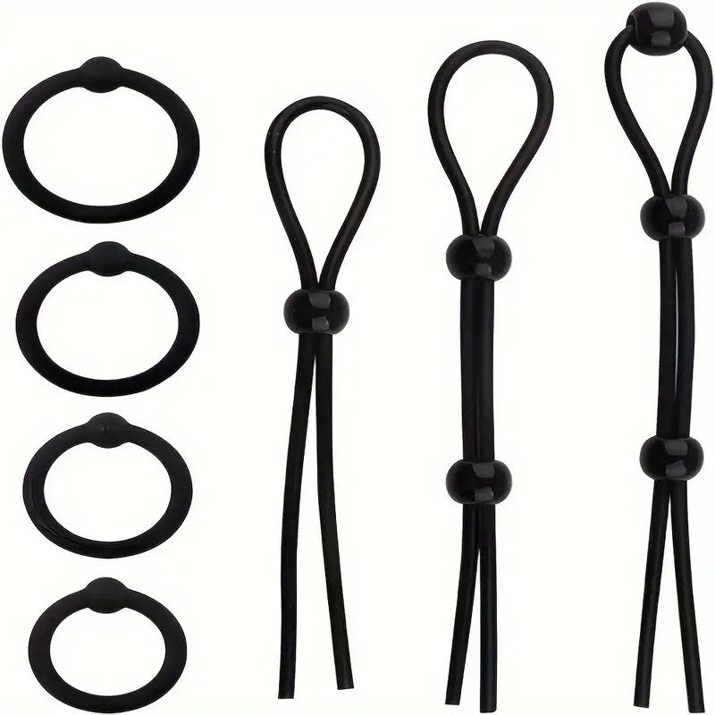 7pcs Silicone penis ring kit with 7 different sixes for erection enhancing, adjustable cock rings. Long lasting stronger adult sensual toy for men or couple