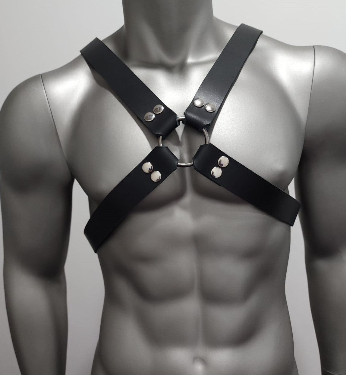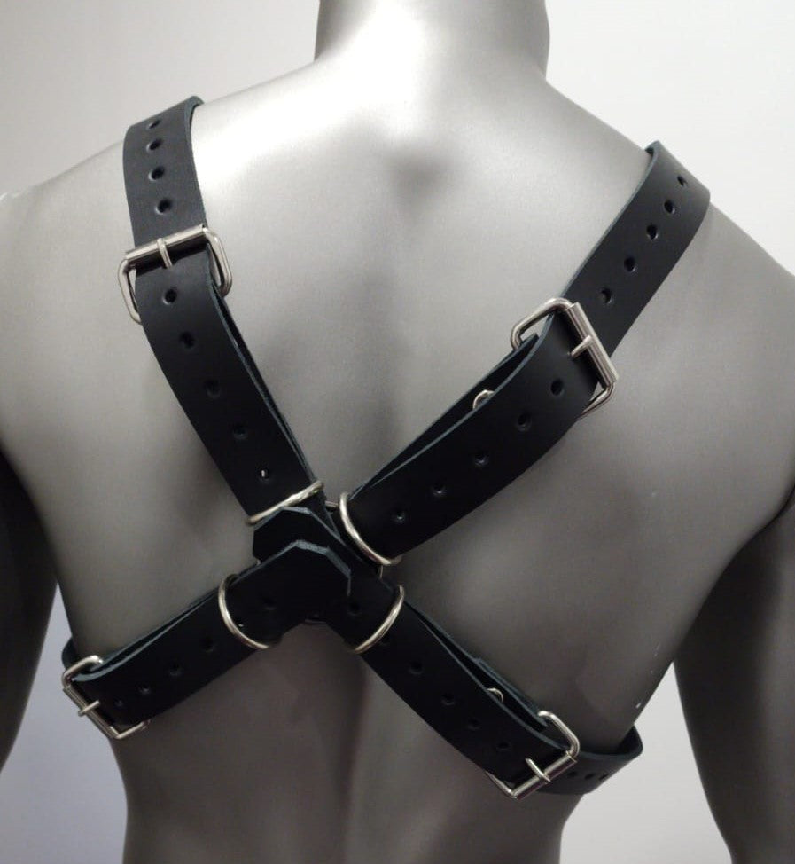 The Standard Harnesses for Males.... are perfectly shaped to enhance the chest, giving that seductive look . Genuine Leather, which has a perfect fit of perfection. Easy adjustable to fit Two sizes ( incase of gaining or losing weight).