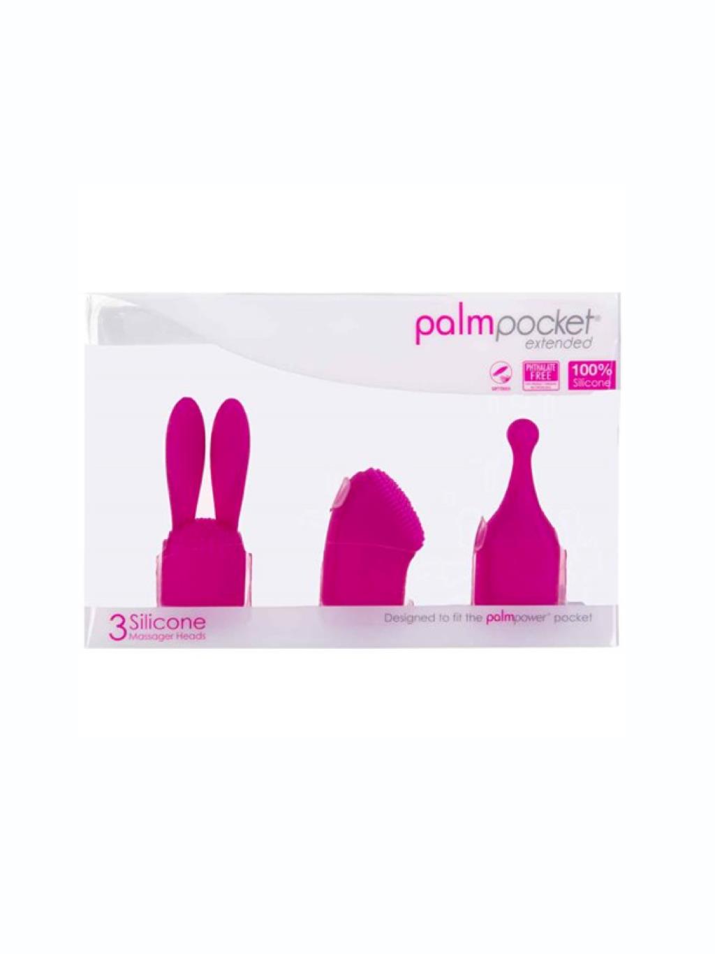 Expand your world of pleasure with the PalmPocket Extended silicone attachments. This set of 3 silicone heads easily attaches to the PalmPower Pocket, allowing you to achieve different, breathtaking sensations every time!