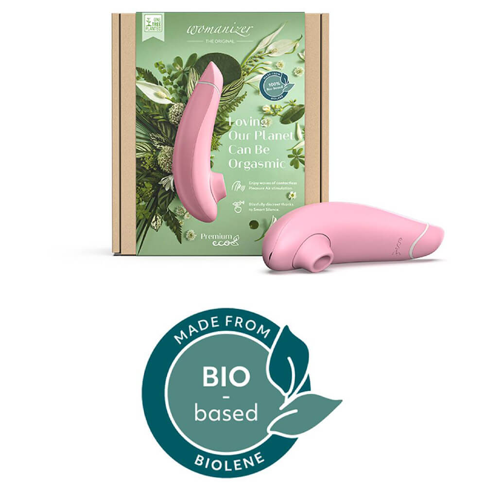 Meet PREMIUM eco, Womanizers brand new, recyclable, bio-based sex toy. PREMIUM eco is not an evolution, its a revolution. It replaces ABS plastic with bio-based Biolene, a bioplastic made from renewable sources. Featuring modular design and a rechargeable, replaceable battery, with ethically-sourced, sustainable packaging, its PREMIUM in name, and eco in nature.